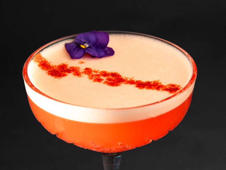 18.-Mezcal, citron vert, sirop d’agave et purée de fruit de la passion, sublimés par des tranches de jalapeños et la fraîcheur du ginger beer.
